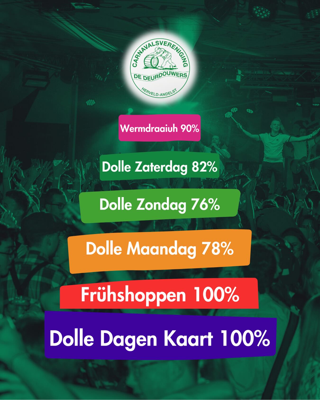 Dolle Dagen dagkaarten koop je via bovenstaande knop. Die zijn 5 euro goedkoper dan aan de kassa, dus waar wacht je nog op?